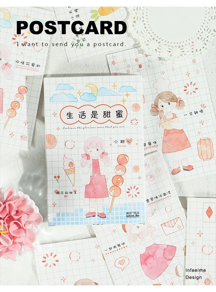 30 Sheets/Set Cute Life is Sweet Postcard Greeting Card Birthday Letter Business Gift Card Set Message Card